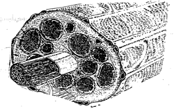 Nerve with bundles of individual nerve fibers and surrounding sheath